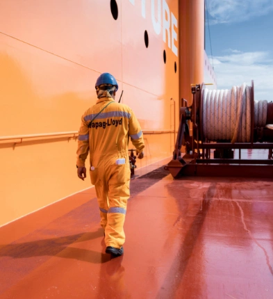 As an internationally active liner shipping company, we operate in a highly competitive environment and have to quickly adapt to the geopolitical developments that impact us. At the same time, keeping our customers’ supply chains intact demands a great deal from our employees. As a company, we are committed not only to delivering quality service to our customers, but also to fostering a fair and appreciative working environment for our team as well as being socially engaged. Our top priority is ensuring the well-being and safety of our colleagues. For this reason, in 2024, we stood by our decision not to sail any more ships through the Red Sea as long as the safety of our seafarers cannot be guaranteed.